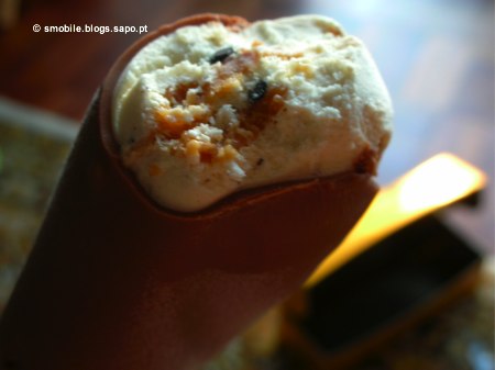 Caramelo com petitas de não-sei-o-quê revestidas a chocolate. (^^,)